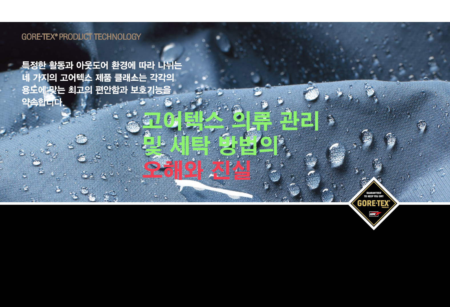 그러면 고어텍스 의류의 세탁 및 관리에 대한 잘못된 정보를 바로 잡아드리겠습니다.