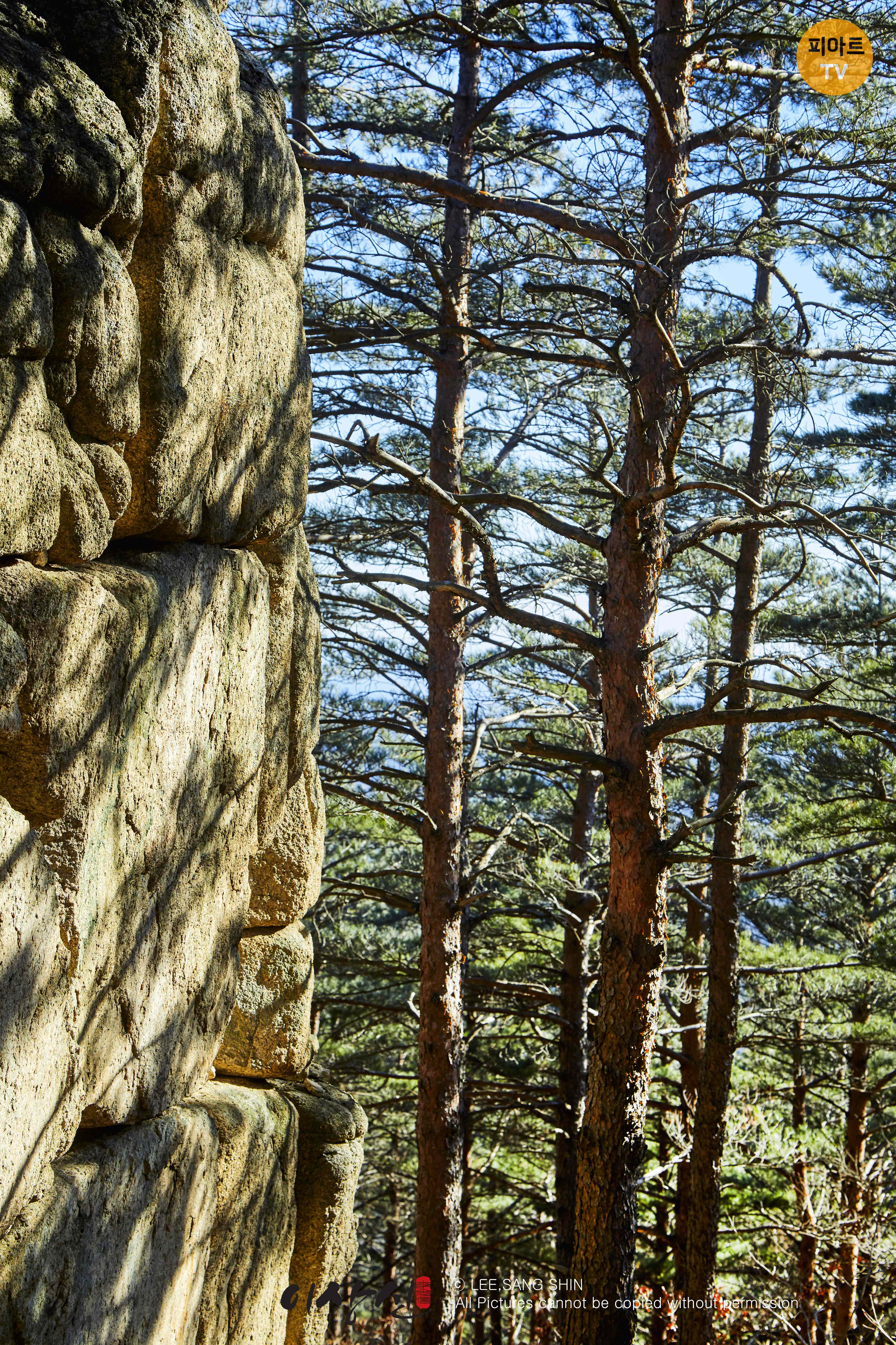 시루떡을 쌓아놓은 듯한 바위 모양이 참 인상적입니다. 그 앞에 쭉쭉 벋은 소나무와 참 잘 어울렸습니다.