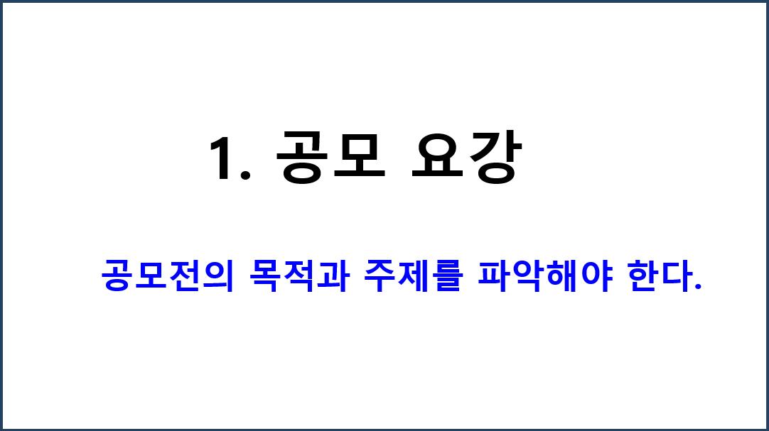 첫 번째, 공모 요강입니다. 공모전의 목적과 주제를 파악해야 하는 것입니다.