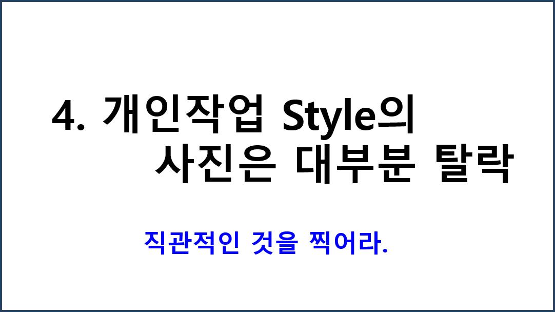 4번째, 개인작업 스타일의 사진은 대부분 탈락합니다.