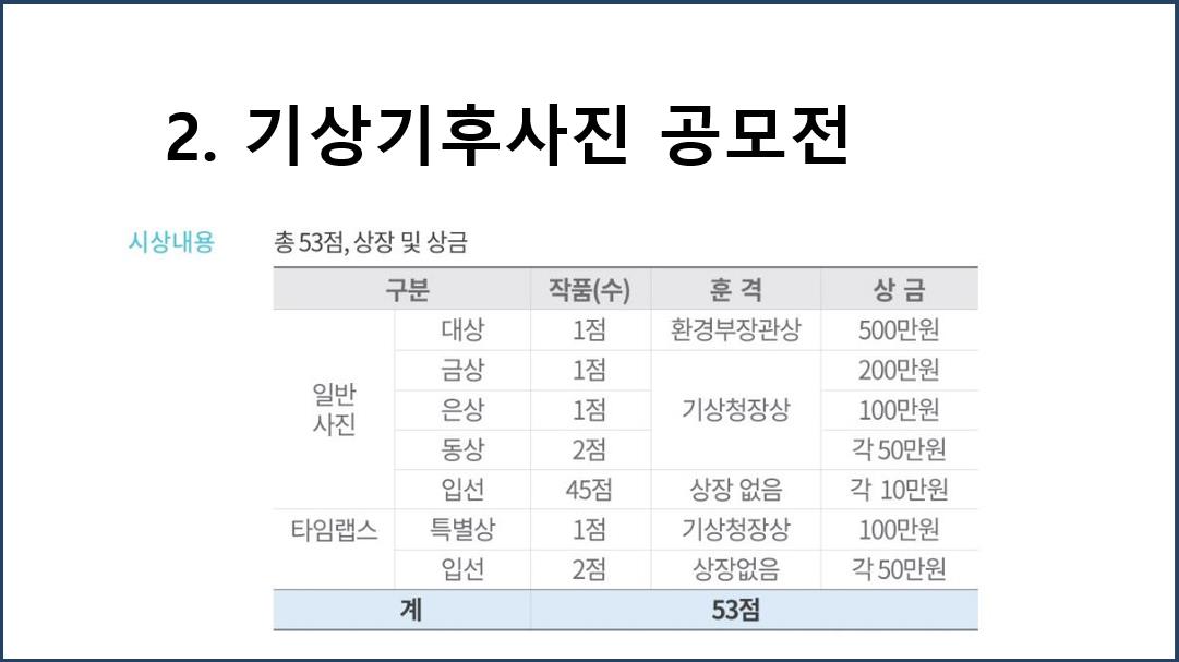 그해에 가장 이슈가 되는 자연 관련 키워드가 있을 거예요. 미세먼지가 되었든, 태풍이 되었던, 그런 일기예보에 관심을 가지고 그런 사진을 찍으면 됩니다.