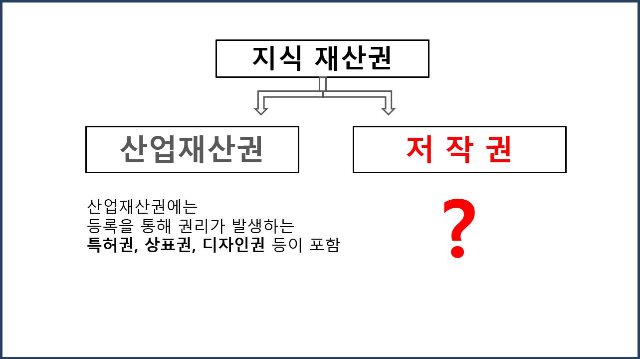 지식재산권은 크게 산업재산권과 저작권으로 구별할 수 있고