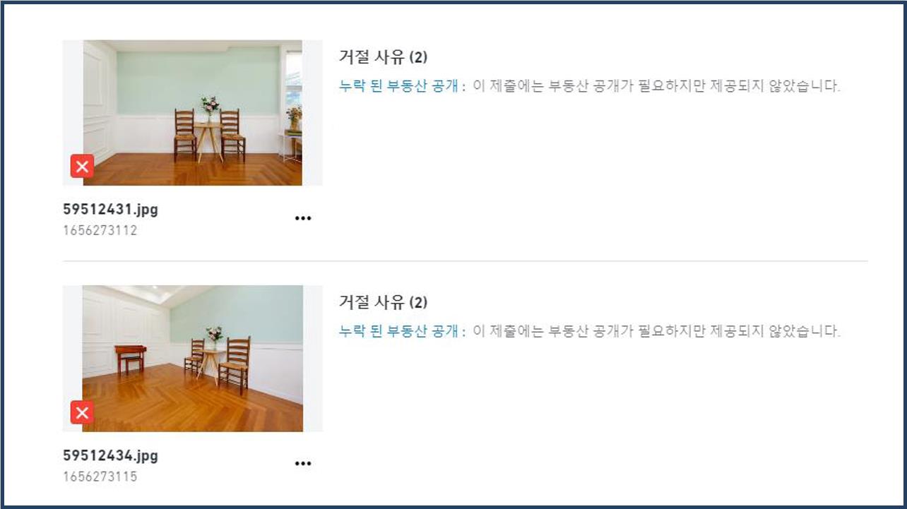 1. 인테리어나 건물 사진 업로드 시 재산권 동의서를 첨부안 했을 때