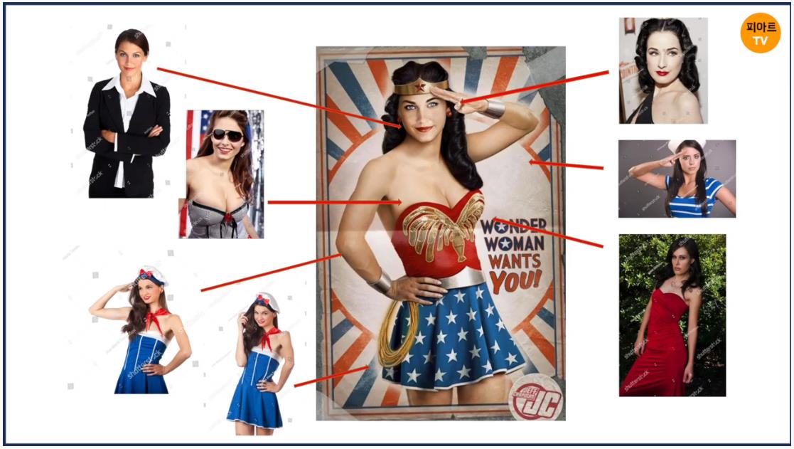 원드우먼 사진입니다. 이 사진은 어떻게 만들어졌을까요? 8장의 각기 다른 사진으로 만들어진 사진입니다.