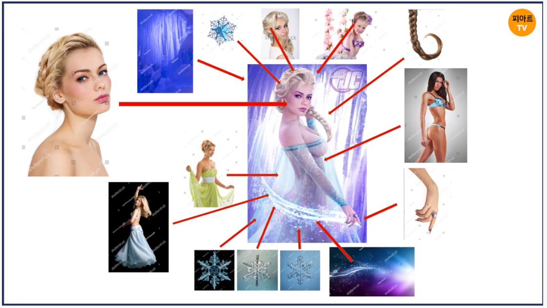 이렇듯 우리는 사진 소스를 판매할 수도 있지만 완성된 이미지를 만들어 판매를 할 수도 있어야 한다는 것입니다. 그렇다고 이 작가처럼 엘사를 만들어 팔자는 것이 아니라 가벼운 합성으로 새로운 다른 이미지를 만들자는 것입니다.