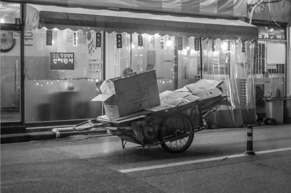 하루에도 몇 번씩 만나는 박스 줍는 리어카, 그리고 요즘은 하루 건너 비가 내리지 않습니까? 운전 중에 찍은 이런 사진들이 팔릴 거라고 누가 상상을 하겠습니까?