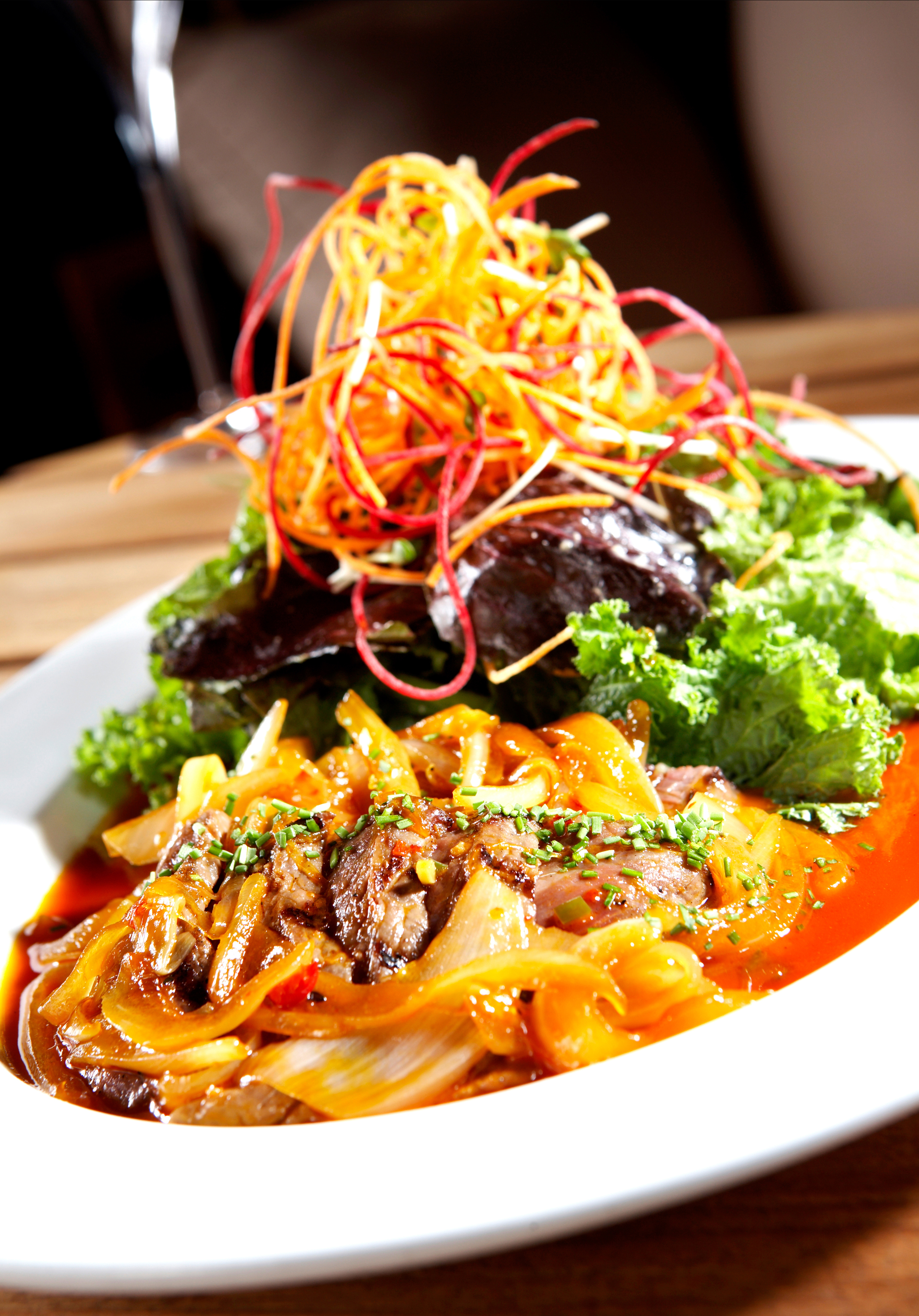 음식 사진은 기본적인 세팅을 찍고 난 뒤 수저를 이용해 면을 들어 올리거나 메인 음식이 앞으로 노출되는 샷으로 식욕을 자극하는 샷도 좋습니다.