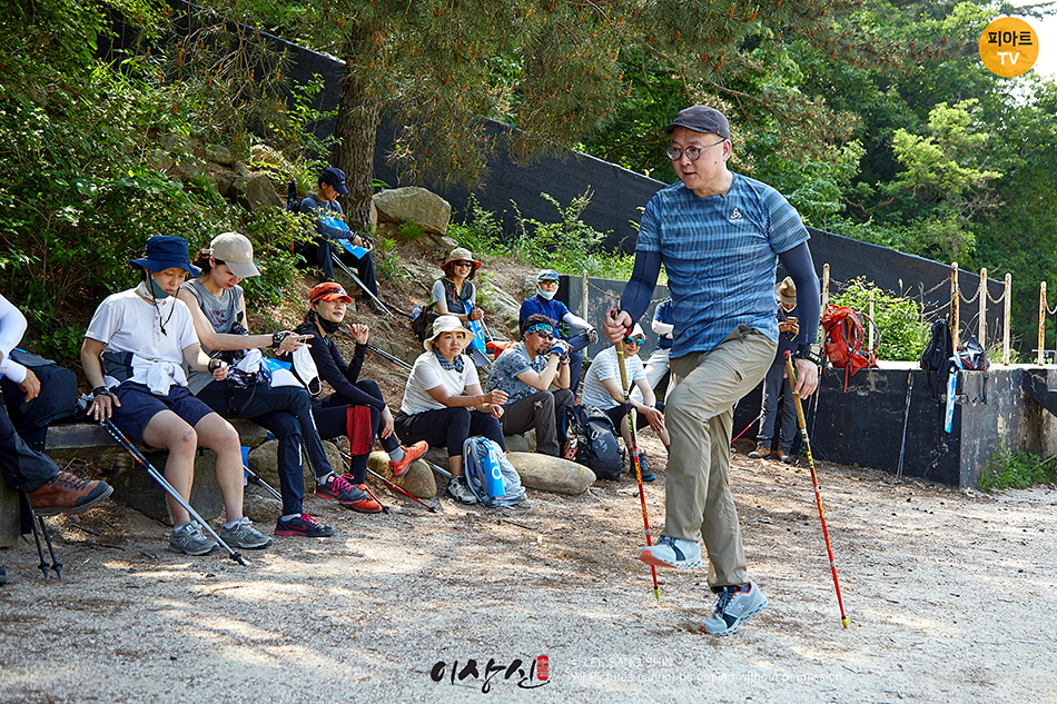 트레킹 틈틈이 참가자분들에게 노르딕워킹과 스틱 사용법에 대해 알려주시는 친절한(?) 박상신 강사님! ^^