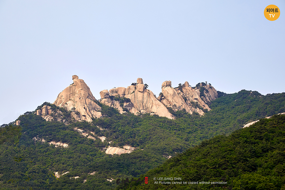 우이령길 오봉산 전망데크에서 바라본 도봉산 오봉의 모습입니다. 어떻게 바위 위에 저렇게 큰 바위를 올려놓았는지~~ ^^
