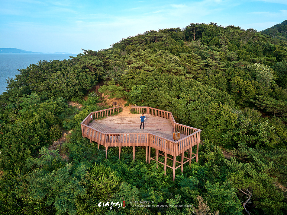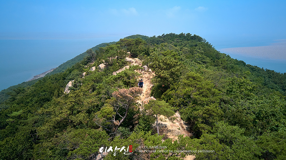 능선길을 걷다보면 탁 터인 공간이 나옵니다. 이 곳에서 서해 바다에서 불어오는 바람소리와 새소리, 매미 소리, 수평선을 바라보며 한참을 쉬었습니다.