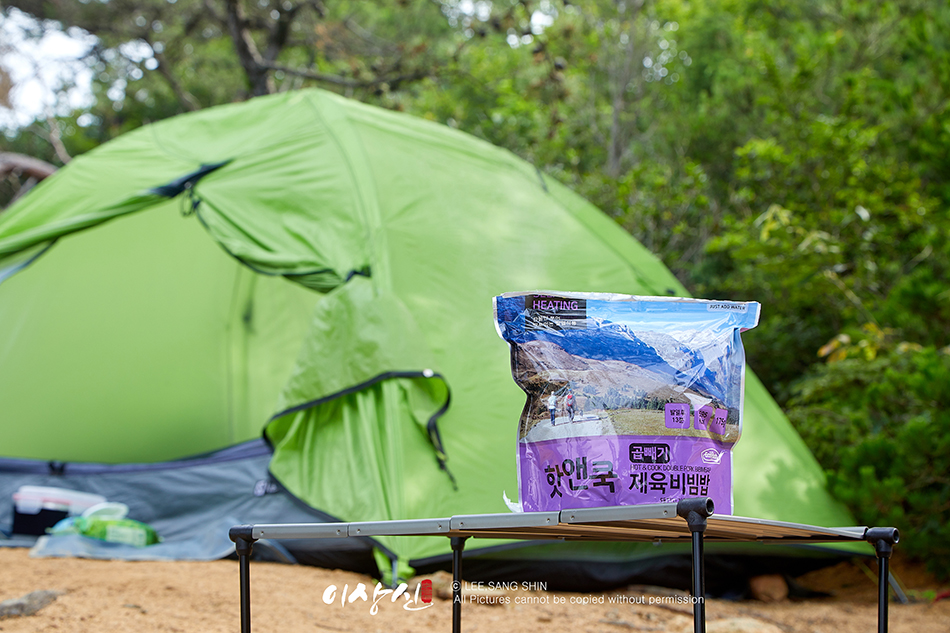 식사는 비화식으로 발열재를 이용하여 간단하게 해 먹었습니다. 야영 자체는 불법이 아니지만 화기 사용은 어느 산이든 불법이기 때문에 지키려고 노력중입니다. 아쉬운건 삼겹살을 굽지 못한다는 것이 이쉬울 따름입니다. ^^