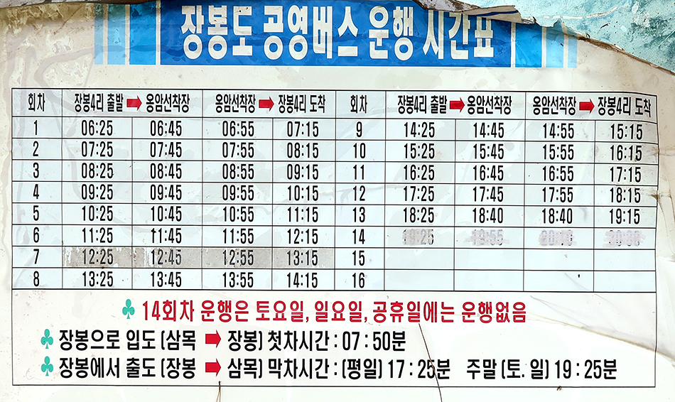 장봉도 선착장에 도착하면 바로 앞에 공영버스가 대기하고 있습니다.