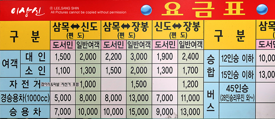 편도 가격은 3,000원(대인)입니다(인천 시민은 2,200원), 저렴한 편입니다.^^