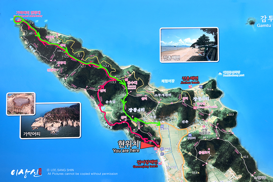 ① 종점에서 올라가는 방법: 해안 둘레길과 능선길 선택