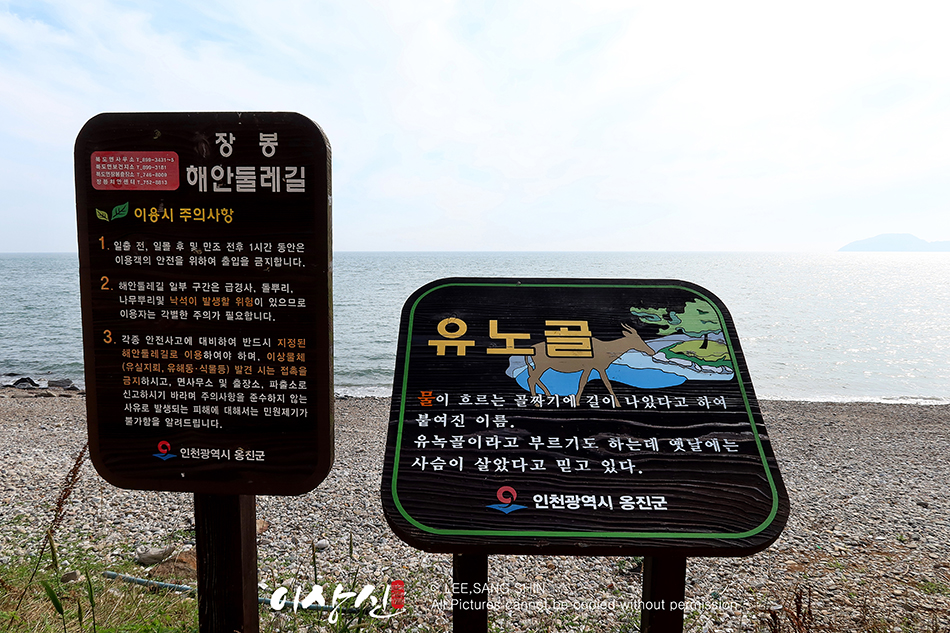 등산로 입구에서 해안둘레길을 따라 오르락내리락하며 900m정도 가면 윤옥골이 나옵니다.
