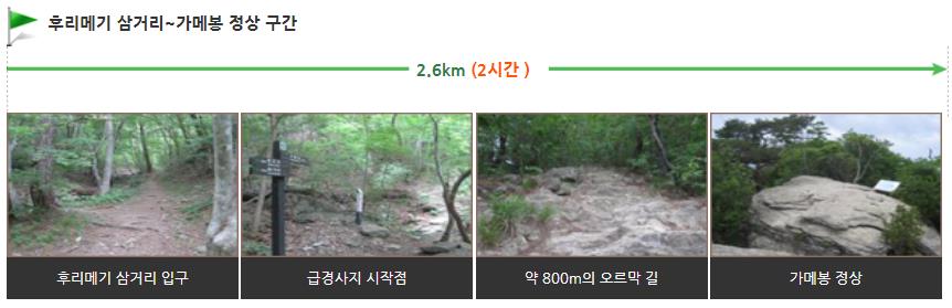 가메봉 정상 코스는 누구나 오를 수 없을 만큼 아주 험난한 코스이기 때문에 꼭 등산 장비를 갖추고 타는 것이 좋습니다.