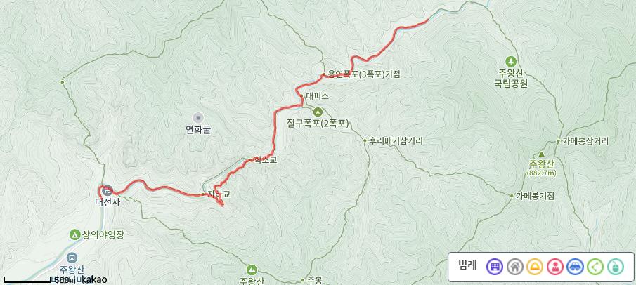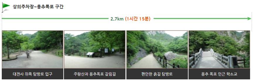 주왕산 주왕계곡 코스 : 상의주차장 → 대전사 → 용추폭포 → 용연폭포 → 내원동