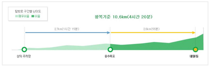 소요시간 (편도) : 04시간 20분, 거리 : 10.6km , 난이도 : 하