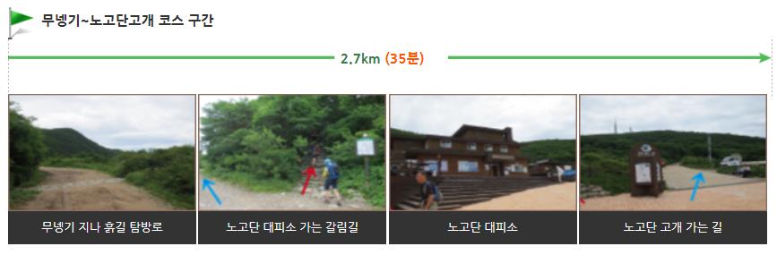 이 구간은 평탄하면서 넓은 길로 절반이상이 흙으로 이루어져 있어 비교적 쉽게 오를 수 있습니다. 1.2km로 약 35분 정도가 소요됩니다.