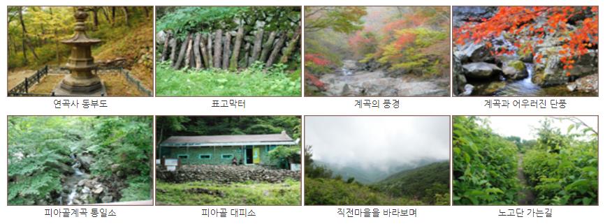 여름철(5월) 계곡변의 녹음과 가을철(10월~11월) 단풍이 절경인 탐방 코스이다.