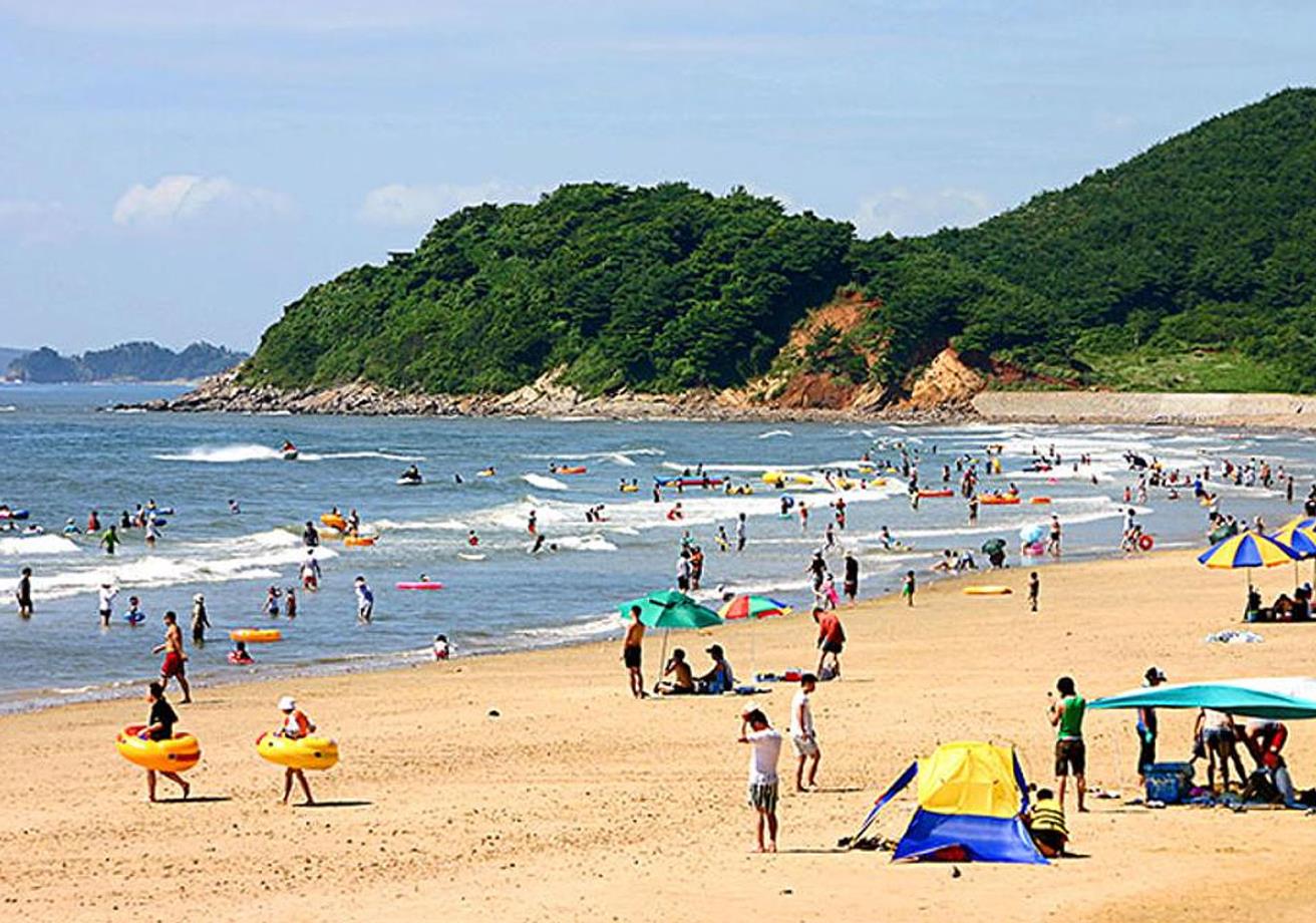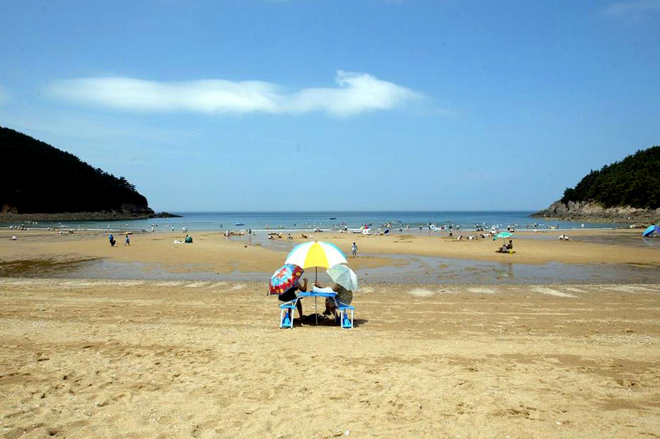활처럼 휘어진 모래사장으로 이어져 있고 수심이 완만하고 넓은 백사장이 있어 해수욕을 즐기기에 안성맞춤인 곳입니다.