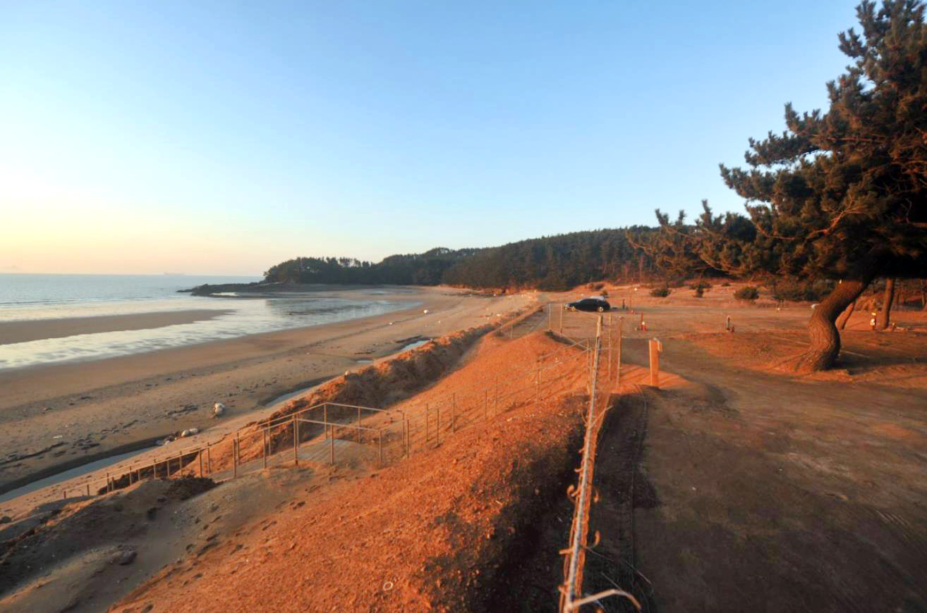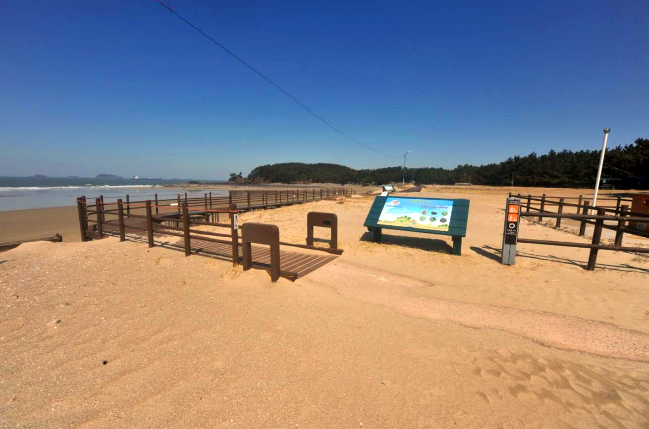 해수욕장 뒤로는 소나무 숲이 잘 조성되어 있어서 캠핑객들이 많이 찾는 곳으로 썰물 시 드러나는 모래밭이 단단하여 해안가에서 스포츠를 즐기거나 산책하기 좋은 해수욕장입니다.