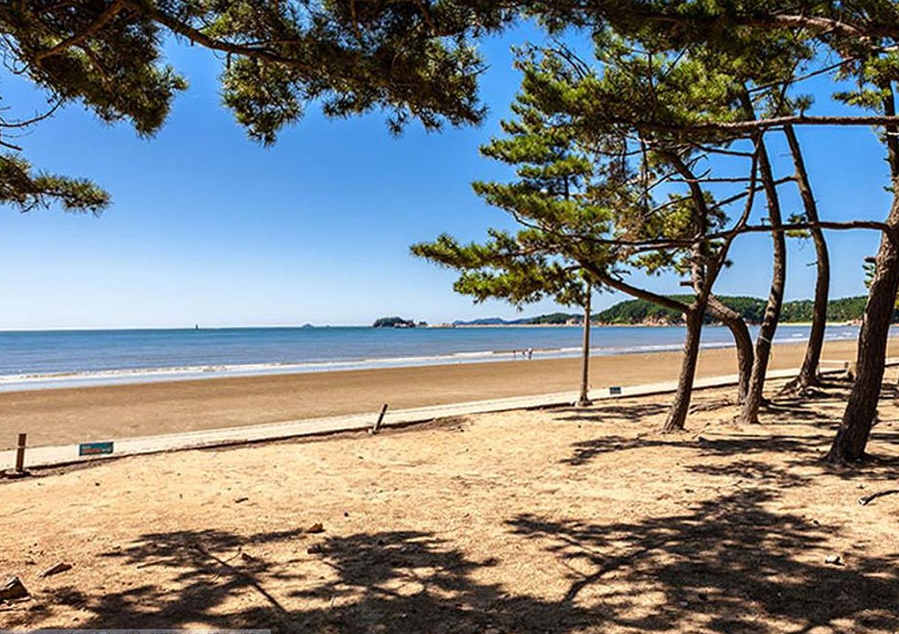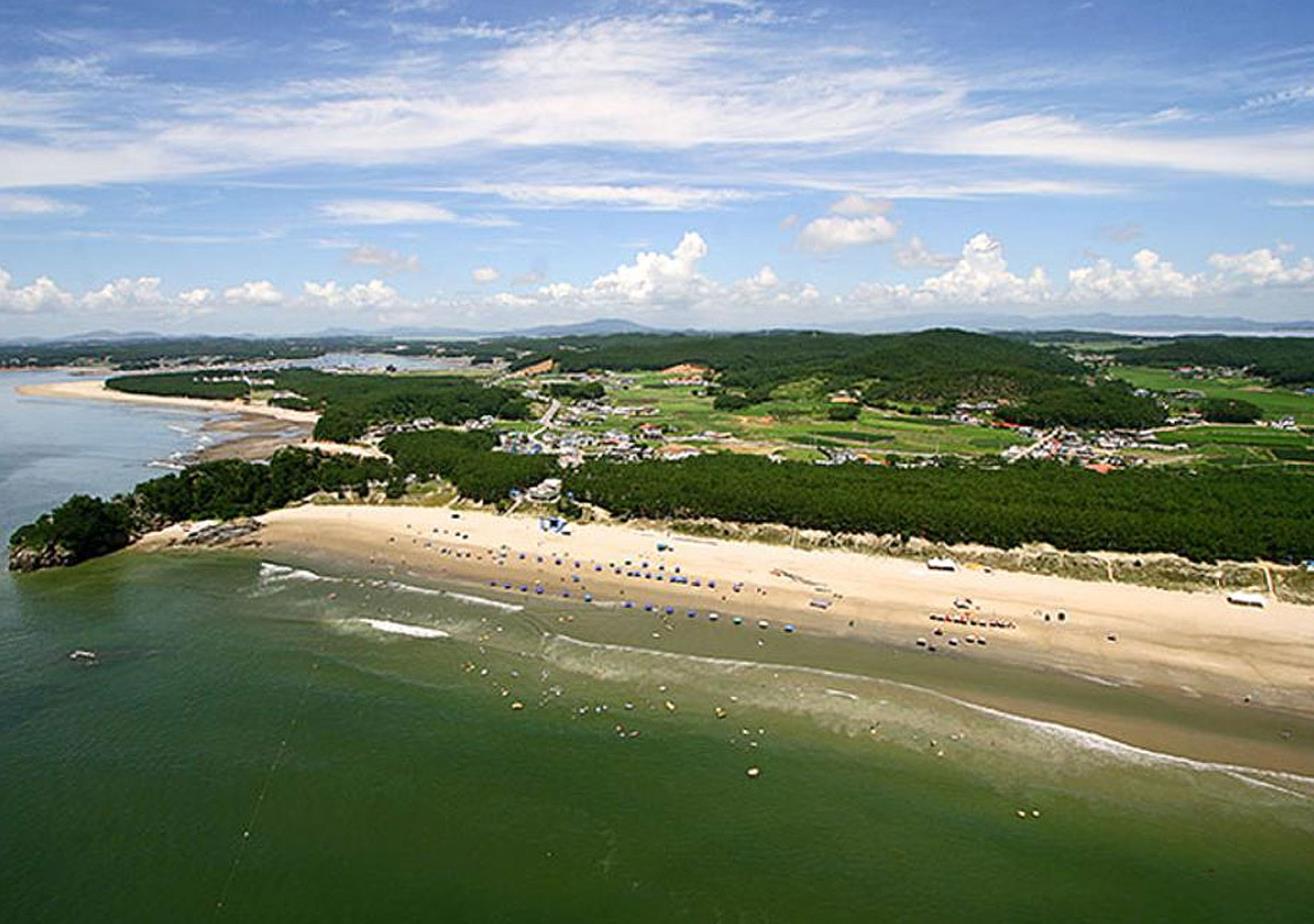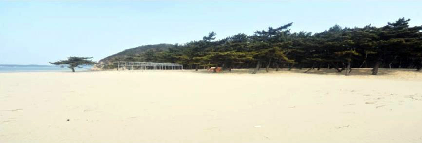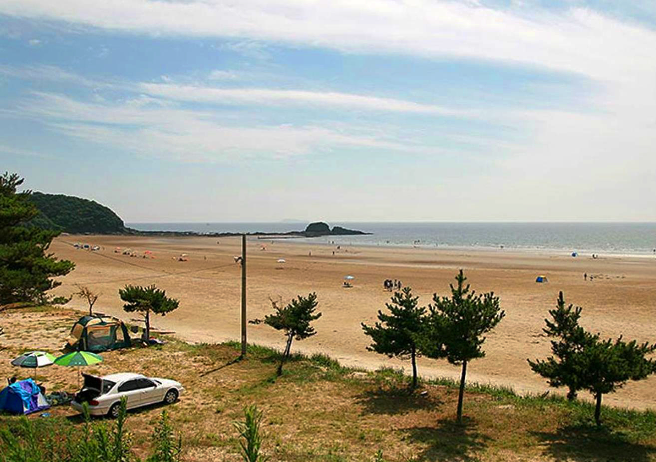 백사장 해수욕장 해변은 은빛 모래로 끝없이 길게 뻗어있어 썰물 때면 수평선으로 변하고 간만의 차가 심하나 안전하고 수온이 알맞아 늦은 여름까지 해수욕을 즐길 수 있는 곳입니다.