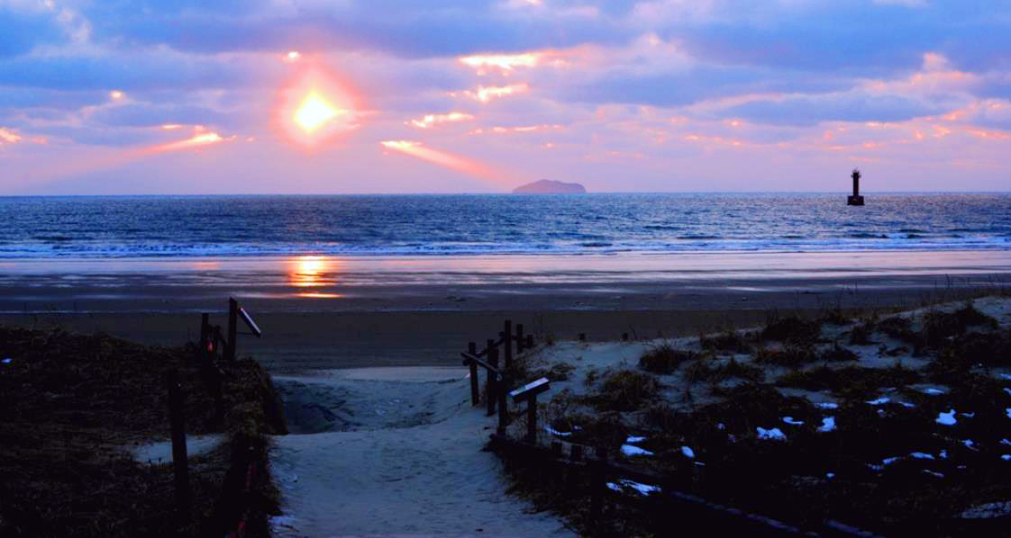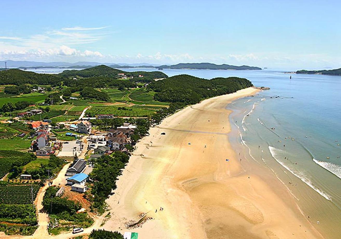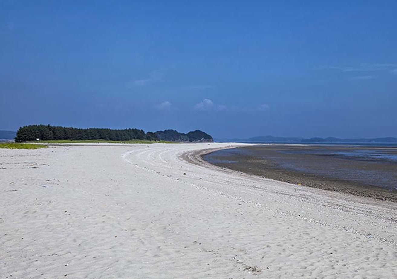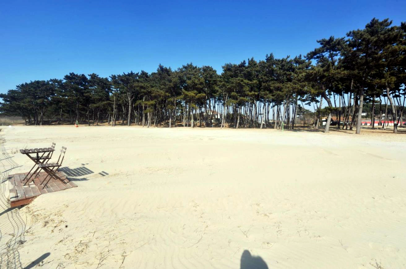백사장 해수욕장 해변은 은빛 모래로 끝없이 길게 뻗어있어 썰물 때면 수평선으로 변하고 간만의 차가 심하나 안전하고 수온이 알맞아 늦은 여름까지 해수욕을 즐길 수 있는 곳입니다.