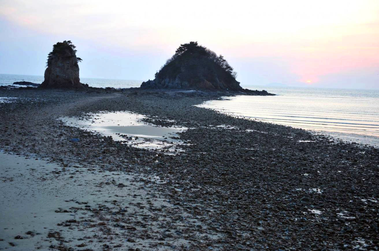 바다로 나간 남편을 맞이하듯 마주선 두 바위가 애틋해 보이는데 썰물 때면 두 바위가 마치 한 몸인 듯 모래톱으로 연결되는 모습을 볼 수 있습니다.