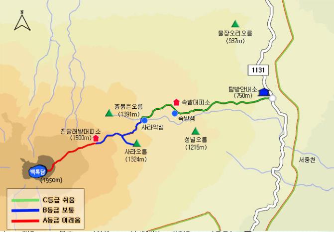 성판악 관리사무소에서 출발하여 속밭, 사라오름 입구, 진달래대피소를 지나 정상까지는 대체적으로 완만한 경사를 이루고 있어 큰 무리는 없지만 왕복 19.2km를 걸어야 하기 때문에 체력소모에 따른 안전사고에 신경을 써야 하는 코스입니다. 하산하실 땐 관음사 코스를 이용하시는 것도 추천드립니다..