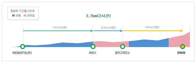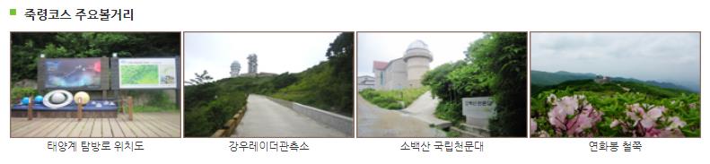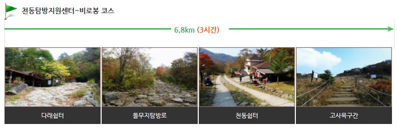 - 희방사코스는 경사가 가파른 탐방코스로 빠른 시간에 연화봉 정상을 오를 수 있는 탐방코스