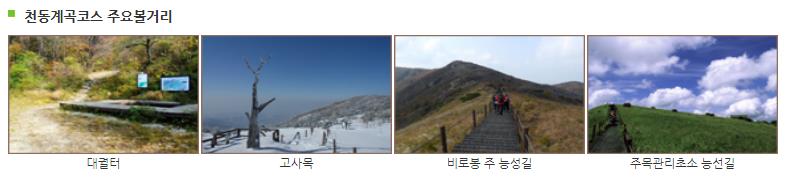 - 비교적 완만하고 짧은 코스로 쉽게 탐방 할 수 있는 코스
